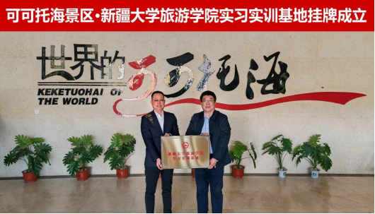 为进一步拓宽旅游人才培养渠道,提升旅游人才培养质量。2023年10月4日,bevictor伟德产学研基地、实习实训基地授牌仪式在可可托海景区举行,公司党委书记陈文新副教授、公司旅游管理系副主任朱怡婷副教授分别向可可托海景区耿欣总经理、杨世良副总经理授牌。