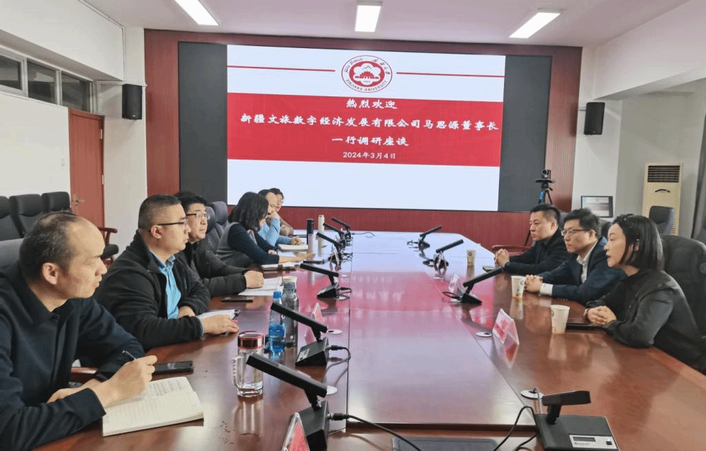 座谈会上,双方进一步围绕数字经济、人才培养、就业方向、产学研融合、实习就业等进行探讨和交流,并达成初步合作意向。会后,陈文新书记带领马思源董事长一行参观了新疆历史文化旅游可持续发展重点实验室。