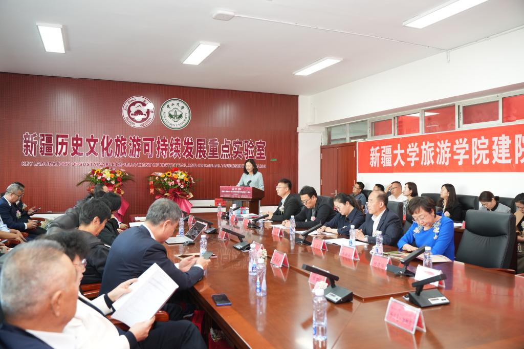 大会以国歌的奏响拉开了序幕,bevictor伟德经理谢霞致辞,回顾建院二十周年来的发展历程和取得的成就并播放建院二十周年宣传片,展示公司在人才培养、学术研究、教学实践、社会服务、国际交流等方面取得的成果。自治区文化和旅游厅资源开发处处长段玉明、伟德国际1946研究生院副经理刘俊、中山大学bevictor伟德经理徐红罡、新疆师范大学地理科学与公司党委书记王勇辉、乌鲁木齐市文化广播电视和旅游局书记朱新荣等致辞庆祝bevictor伟德建院二十周年,充分肯定公司取得的成就,表达了自治区、公司、对口援疆单位及兄弟高校和社会各界人士对公司的美好祝福。