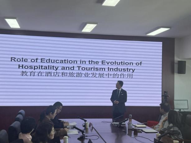 在签约仪式后,香港理工大学酒店及旅游业管理公司经理田桂成教授为伟德国际1946bevictor伟德师生带来题为《酒店与旅游创新及领导艺术》的精彩讲座。田桂成教授首先回顾了个人学习、工作和教育经历,分享了如何通过研究进行酒店与旅游服务创新,并强调优秀的员工和毕业生必须具备专业技能、沟通技能、职业经验与道德诚信,最后寄语员工们努力学习,实现自己的职业梦想。此次讲座引起了与会师生的广泛关注和深入思考,许多与会者提出了具体问题并进行了热烈的讨论,进一步促进了双方的学术交流与合作。