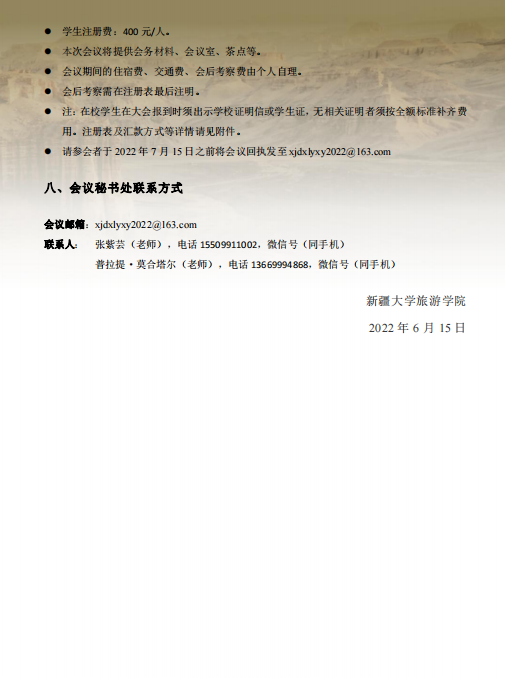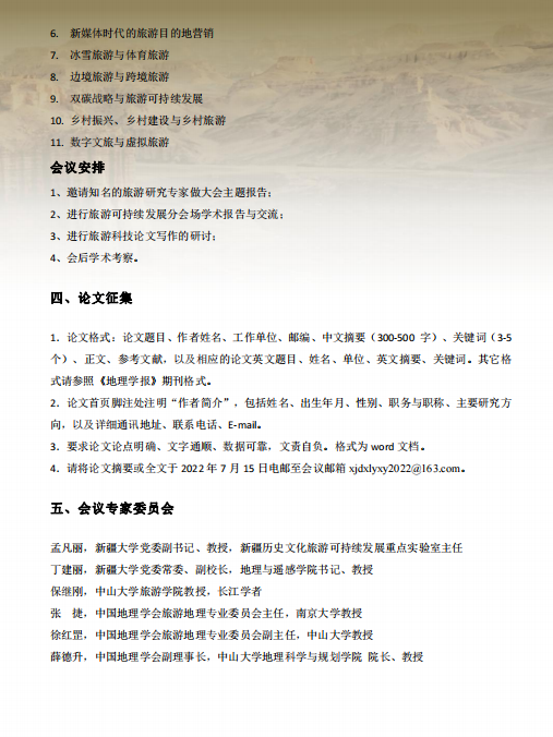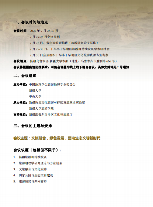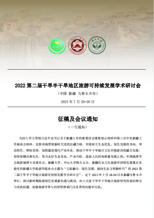 2022第二届干旱半干旱地区旅游可持续发展学术研讨会 征稿及会议通知