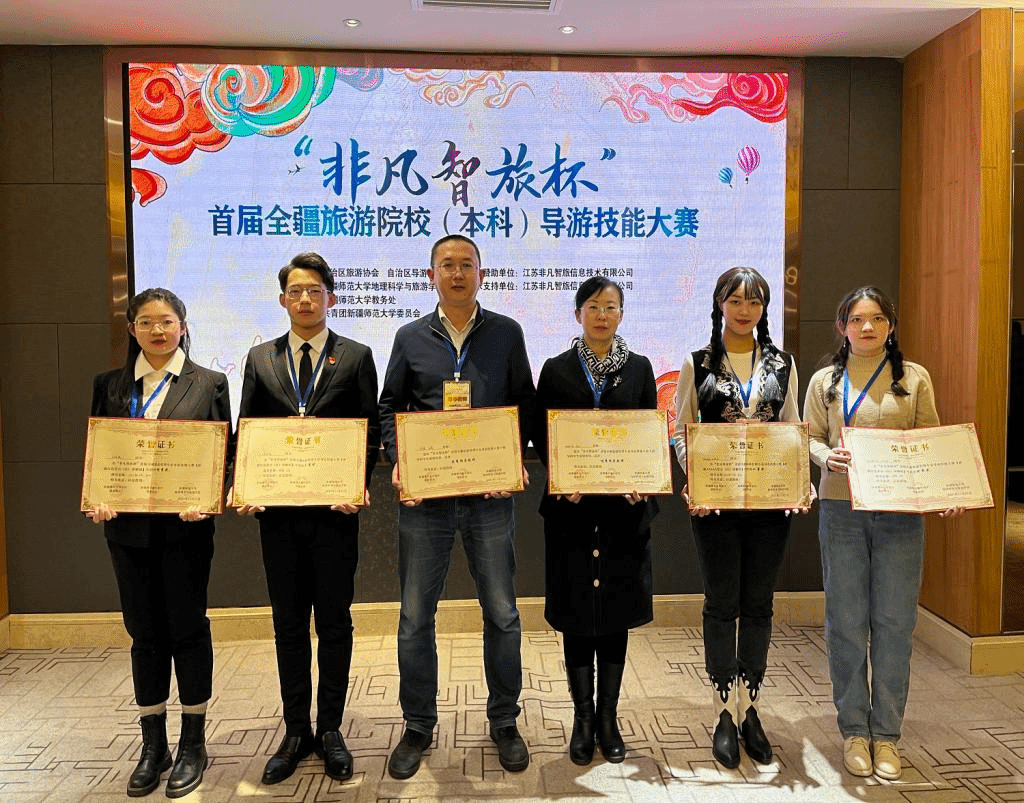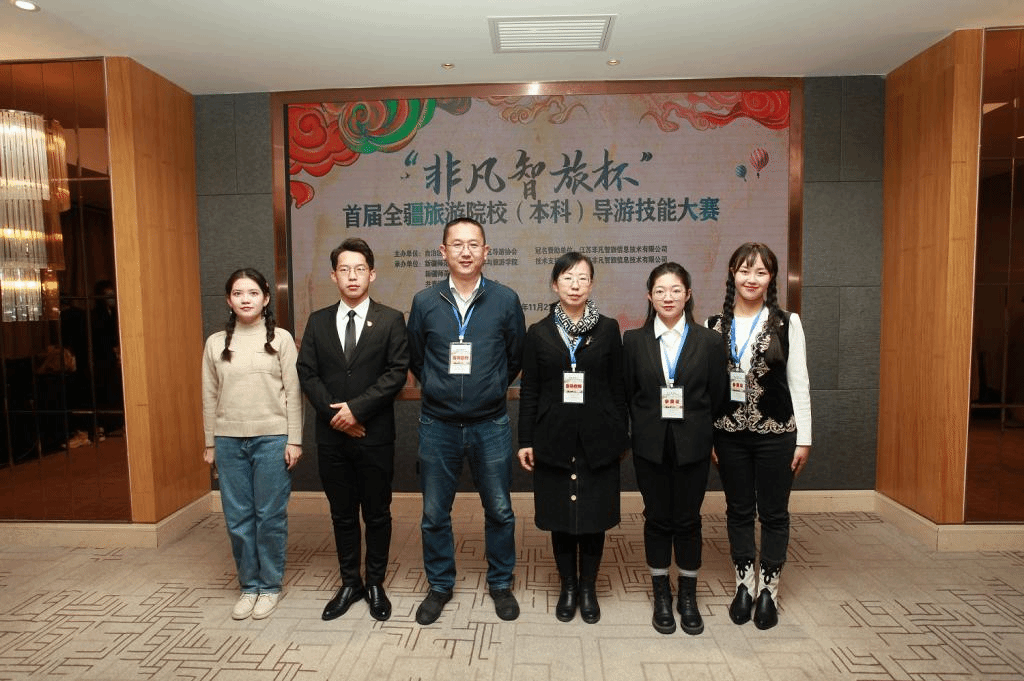 11月21日上午9:30,由自治区旅游协会,自治区导游协会主办,新疆师范大学地理科学与bevictor伟德承办的首届“非凡智旅杯”全疆旅游院校导游技能大赛在乌鲁木齐环球国际大酒店举办。阿的勒·扎克老师和杨丽老师带领bevictor伟德的四位参赛选手参加了本次比赛。
