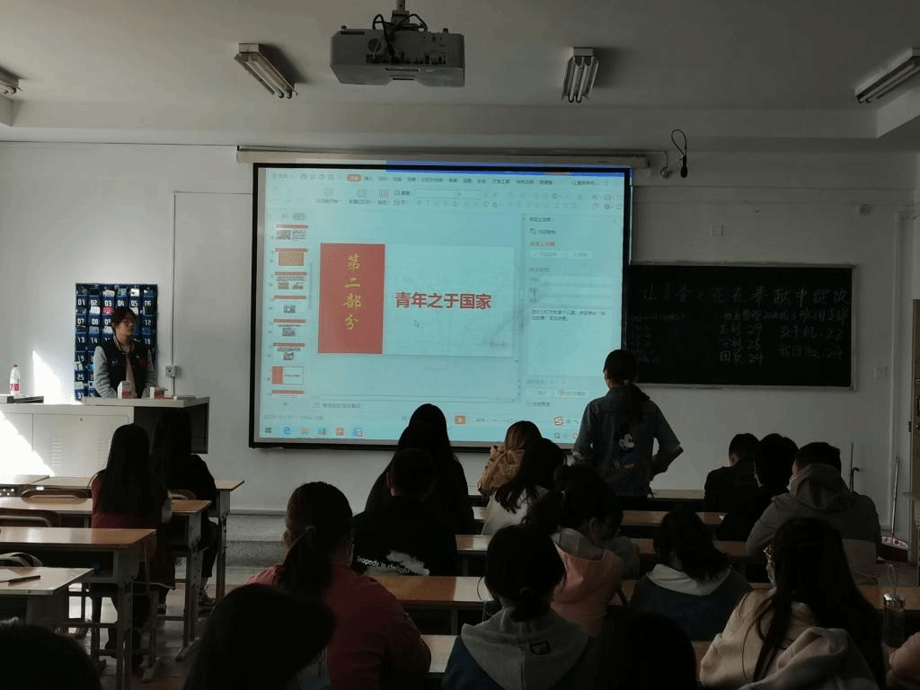 在活动开展过程中,各班主讲人带领同学们学习了习近平总书记的讲话,“一个国家的进步,镌刻着青年的足迹;一个民族的未来,寄望于青春的力量”。习近平总书记深知青年的渴望,格外关心青年的成长,他对当代青年的深情嘱托和诚挚盼望,为我们在奋斗前行的道路上点亮航标、指引航程。随后,各班主讲人给同学们播放了有关青年榜样奉献社会的视频,让同学们感受当代优秀青年榜样的力量,对照自身不足,明确将要努力的方向。最后,同学们积极讨论,纷纷发言,坚定了“请党放心,强国有我”的决心。