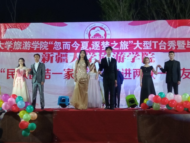 时值5月初夏,又临毕业别离,如此时节赋予本次晚会不一样的涵义。春去秋来,时间如白驹过隙,从迈进大学的第一步起,我们并肩前行,共同成长,在朗朗读书声中,在青山绿水的游学中,在杯盘交错的实训中,不知不觉,四年青春悄然逝去。为了给这美好的青春篇章一个最美好的终曲,经过一个月有余的晚会节目征集、晚会节目审核、以及多次彩排,各部门精心筹备,各年级同学积极参与,终于我们顺利举办了这场盛大的晚会。晚会分三部曲进行,热情四射的歌舞,高贵典雅的走秀,妙趣横生的小品,创意十足的剪影故事令场内欢呼不断,这三部曲正如大家的青春,既有优美惬意的浅吟低唱,又有共同奋斗的激昂高歌,还有深情不舍的抒情夜曲。晚会中场落下丝丝不舍的细雨,情深深雨蒙蒙,雨水浇不灭场内观众的热情,剪不断旅游学子的情思。晚会在公司党委副书记阿的勒·扎克老师的毕业生大学最后一次的充满深情的晚点名中圆满结束,成为我们bevictor伟德毕业生永不消逝的夏日回忆。