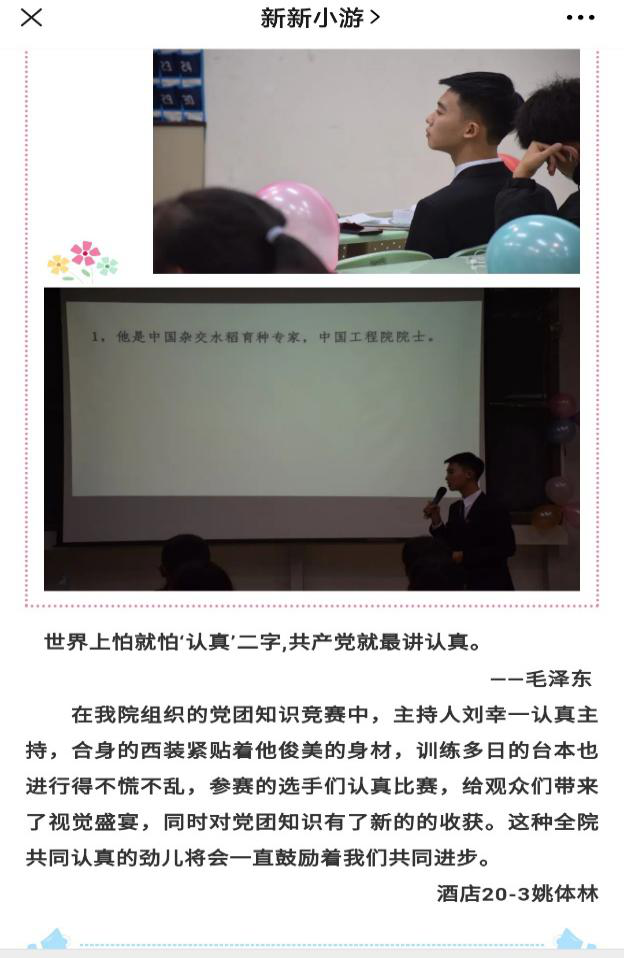 希望通过本次活动让每一位员工明白认真对待自己的课堂,因为它是自己最有趣的调味品。如果觉得生活很辛苦,就加点糖吧,这些糖就是我们的好奇心,就是我们的兴趣点,也是我们爱好所在。只有做这些事情的时候,是发自内心满心欢喜的,是真的能够孜孜不倦的,是永远不会觉得厌烦的。天道酬勤,认真起来的你所向披靡、无往不利。请认真对待一切值得你去认真的人和事,他们很美,而你,认真起来的样子更美。