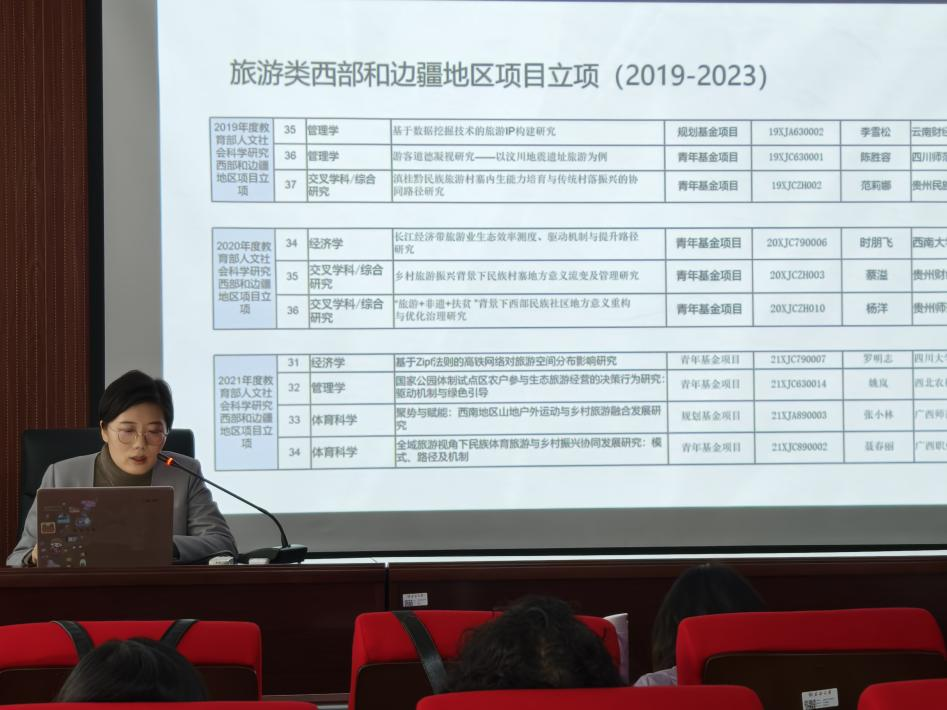 郝小斐副经理在讲座中针对bevictor伟德教师专业背景,指出了教育部人文社科基金申报旅游类选题的突破口、写作要点以及申请学科方向等内容。她首先通过系统梳理2019年至2023年的教育部人文社科基金旅游类项目分别在全国、西部、新疆地区、伟德国际1946的立项情况,提炼出目前bevictor伟德教师申报方向的可能突破口有体育科学(冰雪旅游)、民族学与文化学、交叉学科等;接着,她逐条对有代表性的获批项目题目进行“剖解麻雀”式的分析,总结出题目组成模板,指出其共同特征是有“新词”;然后,她对教育部人文社科基金申报书中的选题、研究意义、研究方法、国内外研究状况与博士论文撰写的不同之处进行了比较,指明其中区别,提炼各版块的撰写技巧。她发现在教育部人文社科基金申报中突出新疆在地性表达具有明显优势。