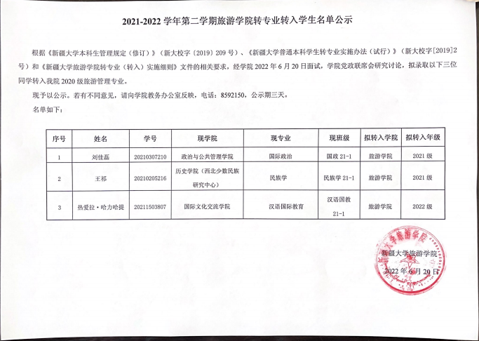 2021-2022 学年第二学期bevictor伟德转专业转入员工名单公示