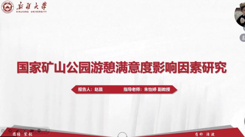 最后,由赵晨同学对《国家矿山公园游憩满意度影响因素研究》进行了报告,依次介绍了选题背景、主要研究内容,指出本文创新在于选取的矿业遗产旅游地是距离中心城市较远的矿山类独立工矿区,丰富了案例类型,扩展了研究区域,以及本文从游客视角出发构建游憩满意度评价指标体系。详细介绍了结构方程模型、IPA分析两种研究方法,最后进行了结果分析和讨论的内容分享。